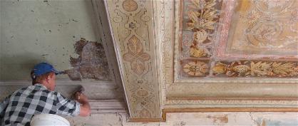 Bei den Renovierungsarbeiten wurde unter anderem eine aus der Zeit um 1760 stammende Deckenbemalung wiederentdeckt sowie eine im Biedermeierstil erstellte und mit Intarsien versehene Holzdeckenvertäfelung freigegelegt.