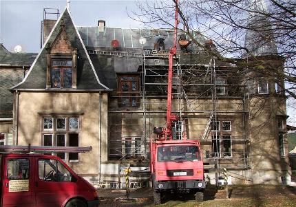 Die seit 2009 laufenden Sanierungs- und Modernisierungsarbeiten sehen eine Fertigstellung der Fassade sowie des Erdgeschosses bis Anfang 2012 vor.